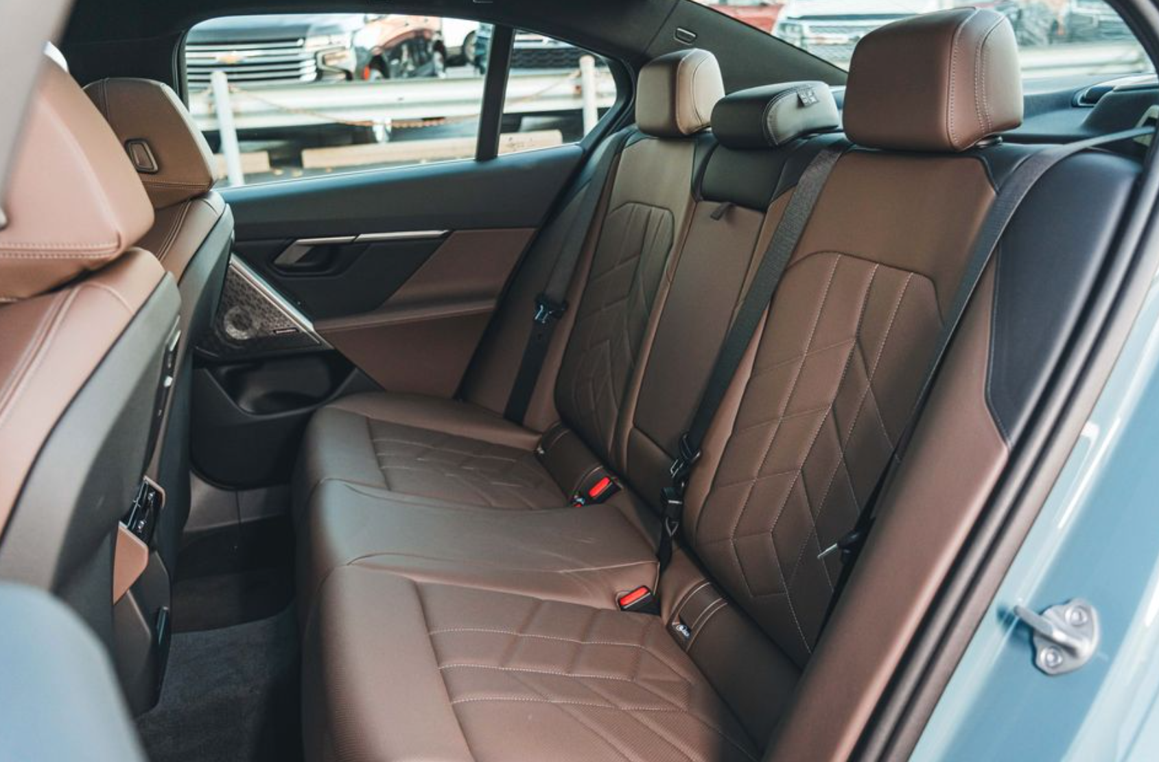 Inside the new 2025 BMW 5-Series, things have gotten pretty high-tech with big screens taking over the dashboard. The dashboard is simple, with a horizontal vent dividing it, not many physical buttons, and a matching trim on the door. Instead of the usual gear shifter, BMW went for a much smaller one, creating extra space for storing things on the transmission tunnel. You can also get the 5-Series with vegan leather seats and fancy materials.