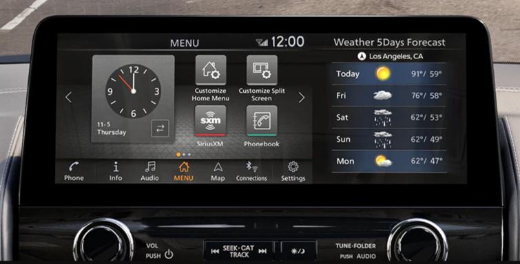 Now Let’s Explore The Armada’s Infotainment and Connectivity! Like the previous model, you got the big 12.3-inch touchscreen on the dashboard. Even though it’s not the biggest around anymore, it’s still easy to see and use, with handy knobs for adjusting volume and tuning. It comes with all the basics like navigation, SiriusXM satellite radio, Android Auto, and wireless Apple CarPlay.