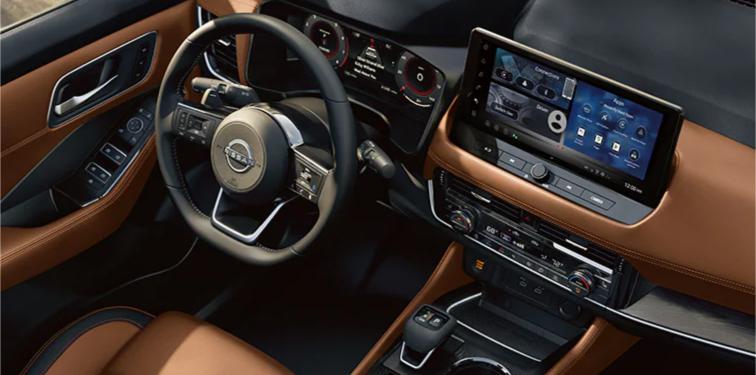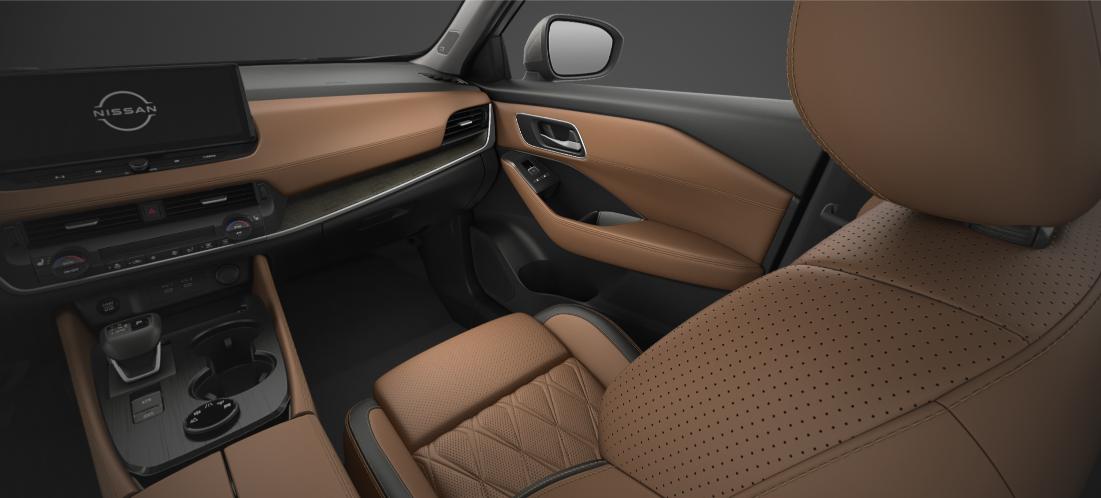 Now let’s explore The new Rogue’s interior. It’s got some cool stuff going on! You’ll notice it’s got bits and pieces inspired by both the Altima and Sentra, like clever storage spots, a dashboard with different levels, and a neat square-shaped gear shifter. These touches not only make things easier to use but also give the inside a sleek, modern vibe.
