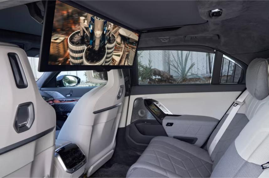 This new 7-Series comes with BMW’s latest iDrive 8.5 interface, which can receive over-the-air updates for new software. An optional rear-seat entertainment system, called Theater Screen, includes a huge 31.3-inch display that comes down from the ceiling. With a 5G connection, passengers can stream Netflix or browse the web, using touchscreens in the door panels to control the system.