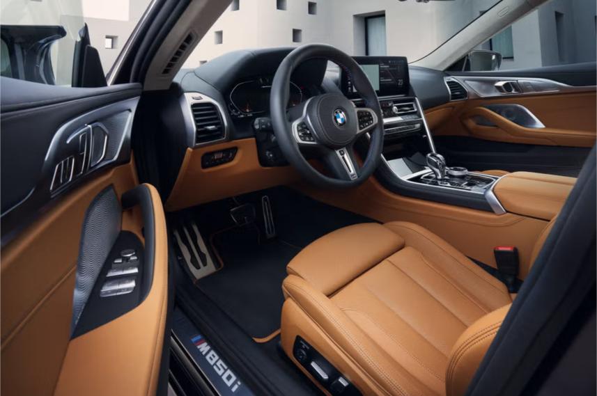 How about the interior? The 2025 BMW 8-Series interior is packed with luxury features and the latest technology you’d expect from a high-end car. It comes with 14-way power-adjustable heated front seats, soft-close automatic doors, and customizable ambient lighting.