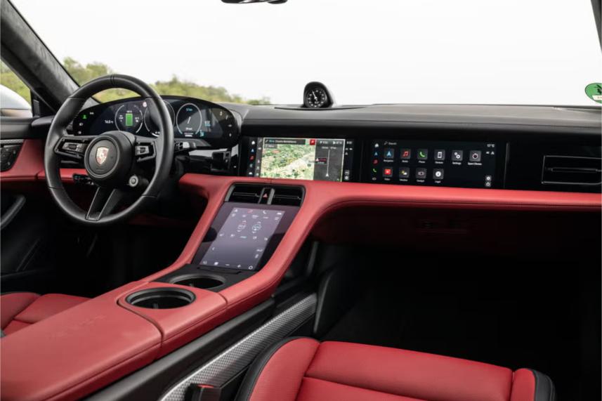 How about the infotainment system? The 2025 Taycan’s infotainment system is all about screens—there are plenty, but few physical buttons. The main dashboard features a 16.8-inch curved display for gauges, and there are two central touchscreens: a 10.9-inch screen for key functions and an 8.4-inch screen below for climate control, battery status, navigation, and wireless Apple CarPlay and Android Auto.