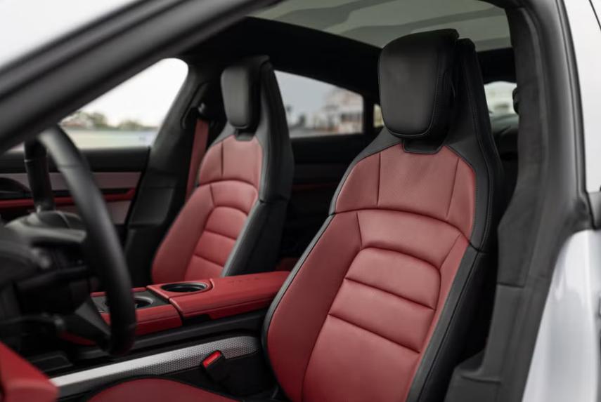 The 2025 Porsche Taycan’s interior is a tech-savvy blend of sleek design and luxury. While it features a minimalist style similar to other Porsches, you can deck it out with high-end materials and various color options. It comes standard with four seats, though you can add a tight-fitting third spot in the back if needed.